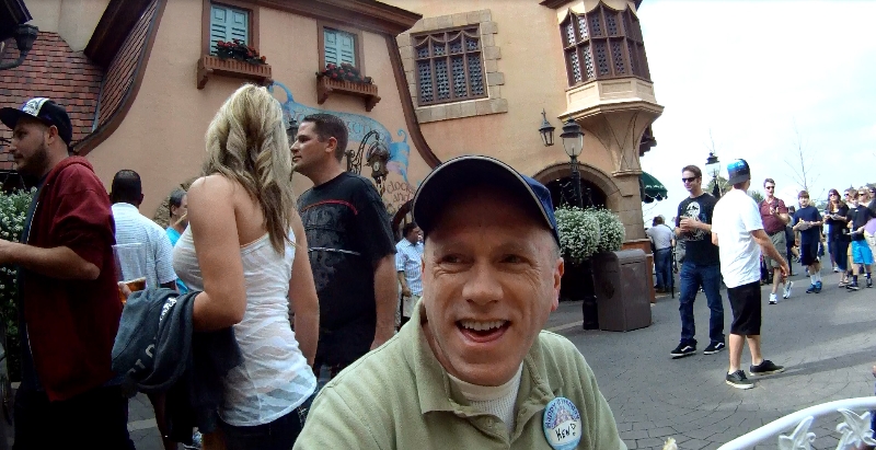 Ken waiting in line at Disney
